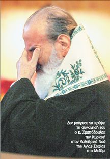 Την Κυριακή, ημέρα της ονομαστικής του εορτής, ο κ. Χριστόδουλος δάκρυσε όταν μίλησε στον Καθεδρικό Ναό της Αγίας Σοφίας στο Μαϊάμι. «Μην απογοητεύεστε,μη χάνετε το θάρρος σας,δεν ήρθε η τελευταία ώρα» είπε με τρεμάμενη φωνή στους εκατοντάδες ομογενείς που γέμισαν ασφυκτικά την εκκλησία για να του ευχηθούν «Χρόνια πολλά, δύναμη και γρήγορη ανάρρωση».