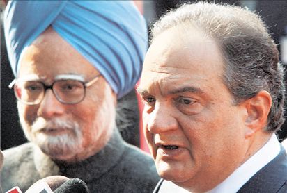 Ο πρωθυπουργός της Ινδίας κ. Μανμοχάν Σινγκ υποδέχεται τον κ. Κ. Καραμανλή στο Προεδρικό Μέγαρο στο Νέο Δελχί