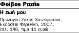 Την κρίσιμη ώρα, όταν ο άνθρωπος πατάει το πόδι του στο φεγγάρι, όταν ο Κένεντι δολοφονείται, όταν… Κάποιοι άλλοι παρατηρούν τα ταραχώδη γεγονότα που σφράγισαν την εποχή τους και άλλαξαν τον ρου της Ιστορίας, προστατευμένοι στο κουκούλι της ντόλτσε βίτα. Η αυτοβιογραφία του Φοίβου Ραζή οδηγεί τον αναγνώστη σε ένα ξέφρενο ταξίδι με σταθμούς τις πόλεις όπου θάλλει η κοσμοπολίτικη ζωή από τη δεκαετία του 1950 μέχρι σήμερα: Ρώμη, Βενετία, Παρίσι, Σαιν Τροπέ, Ντοβίλ, Μεζέβ, Σαιν Μόριτζ… Ενα ανάγνωσμα που «αιθεροβατεί» στο σύμπαν της «καλής» ζωής. Στο βιβλίο γίνεται μια ατελείωτη παράθεση ονομάτων που με τον έναν ή τον άλλον τρόπο σημάδεψαν την εποχή τους: από τον Ζαν Κοκτό και τον Ζαν Μαρέ, την Τζίνα Λολομπρίτζιτα, την Αννα Μανιάνι ως τον Νιάρχο, τον Ωνάση, τον Γουλανδρή, τον Πολ Λουί Βελέρ (ιδρυτή της Air France) και πολλούς πρίγκιπες. Η αυτογραφία «κλείνει» με τον γάμο του Φοίβου Ραζή με τη Γαλλίδα Ντανιέλ, κόρη του ηθοποιού Τζον Λόντερ, μανεκέν στο Παρίσι τη δεκαετία του 1960. Η αυτοβιογραφία του Ραζή μένει δυστυχώς ημιτελής εξαιτίας του απροσδόκητου θανάτου του πέρυσι. Στην Αθήνα, όπως αφήνει να εννοηθεί στον πρόλογό της η κόρη του Ιζαμπέλ, τα τελευταία χρόνια της ζωής του ζούσε πλέον μια ήπια οικογενειακή ζωή. Με την Ντανιέλ, τις δύο κόρες και τα πέντε εγγόνια του, που εξακολουθούν να τον θυμούνται.