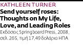 Η Κάθλιν Τέρνερ συνοδευόταν πάντα από την αύρα μιας χολιγουντιανής θεάς, εξίσου έντονη με εκείνη που περιέβαλλε τις σταρ της χρυσής εποχής του αμερικανικού κινηματογράφου. Κάτι η αλύγιστη αυτοπεποίθησή της, κάτι η πεισματική άρνησή της να κάνει οποιονδήποτε συμβιβασμό και κυρίως εκείνη η βαθιά φωνή που είχε τη δύναμη να σαγηνεύσει και η θέση της στο πάνθεον των πιο μοιραίων γυναικών της μεγάλης οθόνης, δεν άργησε να κατοχυρωθεί. Κανείς λοιπόν δεν θα περίμενε ότι τα απομνημονεύματα της 53χρονης πλέον Τέρνερ, που κυκλοφόρησαν πρόσφατα με τίτλο Στείλε τριαντάφυλλα στον εαυτό σου (Send yourself roses), θα ήταν στρωμένα με… ροδοπέταλα: βιτριολικό χιούμορ, αλήθειες που τσακίζουν κόκαλα και υπολήψεις και καμία διάθεση να στρογγυλέψει τις εμπειρίες της μπροστά και πίσω από την κάμερα προκειμένου να τα έχει καλά με όλους και να κερδίσει μερικούς ακόμη καλούς ρόλους είναι τα συστατικά που προκάλεσαν μεγάλη συζήτηση γύρω από το συγγραφικό της πόνημα αλλά και μια μήνυση για συκοφαντική δυσφήμηση από τον αλλοτινό συμπρωταγωνιστή της Νίκολας Κέιτζ.