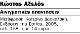 Είναι ο Κώστας Αξελός φιλόσοφος και μάλιστα ο τελευταίος φιλόσοφος, όπως υποστήριξαν ο Ανρί Λεφέβρ (γνωστός γάλλος καθηγητής, φιλόσοφος και κοινωνιολόγος του ουμανιστικού μαρξισμού 1900-1991) και ο Ζαν-Μισέλ Παλμιέ (γάλλος θεωρητικός της σύγχρονης γερμανικής φιλοσοφίας και τέχνης, καθηγητής στη Σορβόννη, πέθανε το 1998 σε ηλικία 52 ετών), ή μήπως είναι ένας από τους πρώτους στοχαστές της πλανητικής εποχής, όπως επίσης έχει λεχθεί; Δημοσιεύει, σήμερα, στα 80 του χρόνια, το καινούργιο βιβλίο του, το 20ό στη σειρά. Ο υπότιτλός του είναι χαρακτηριστικός: «Ρωγμές – Διάνοιξη». Το γραπτό τούτο αποτελεί ελεύθερη συνέχεια και ανοιχτό συμπέρασμα του προηγούμενου γραπτού του: Αυτή η διερώτηση (κυκλοφορεί επίσης στα ελληνικά από τις Εκδόσεις της Εστίας). Παρέχει, με τόλμη, απαντήσεις οι οποίες, όσο προβληματικές κι αν είναι, δεν παύουν να συνθέτουν απαντήσεις, και μάλιστα απαντήσεις καταφατικές.