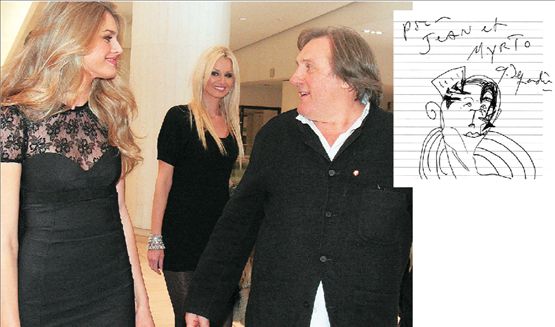 Ζωγραφίζοντας μετά μανίας μπροστά στο μπλοκ του (στο άλλο κρατούσε ένα τσιγάρο που αρνιόταν να ανάψει), ο Ντεπαρντιέ απάντησε σε όλες τις ερωτήσεις που του ετέθησαν εκτός από αυτήν για τον νέο πρωθυπουργό της Γαλλίας Νικολά Σαρκοζί. «Ως καλλιτέχνης πώς θα κρίνατε τον σόουμαν Σαρκοζί;» ήταν η ερώτηση. «Δεν θα απαντήσω» είπε ο Ντεπαρντιέ. «Η πολιτική με αφήνει παντελώς αδιάφορο».