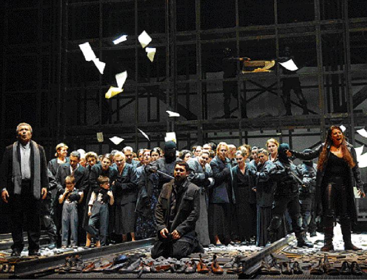 Με μια σύγχρονη ματιά επιχειρεί να προσεγγίσει τον «Ναμπούκο» η σκηνοθέτις της νέας παραγωγής της Λυρικής Τζούλια Πέβσνερ. Η παράσταση τοποθετείται χρονικά στη δεκαετία 1930-1940 και με «αφετηρία» το Ολοκαύτωμα εστιάζει στον πόλεμο, στα θύματά του, στην αλαζονεία της εξουσίας, στις συνέπειες για τους λαούς. «Επιλέξαμε το Ολοκαύτωμα καθώς οι Εβραίοι είναι ο λαός που έχει να κάνει με την πρωτότυπη ιστορία» εξηγεί η σκηνοθέτις και συνεχίζει: «Συμφωνήσαμε ωστόσο ότι δεν θα υπάρχει τίποτε που να παραπέμπει στενά σε αυτούς, ενδυμασία κτλ. Και αυτό διότι θέλουμε να δείξουμε πως είναι μια κατάσταση η οποία θα μπορούσε να αφορά οποιονδήποτε λαό σε οποιαδήποτε εποχή, παλαιότερη, σύγχρονη ή μελλοντική». Οσο για το φινάλε της παράστασης, λέει ότι θα είναι ελπιδοφόρο, αλλά όχι χαρούμενο.