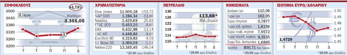 Οι εφιάλτες του 1929 επηρέασαν και το αμερικανικό νόμισμα, ανα κόπτοντας την ανοδική πορεία που είχε την περασμένη εβδομάδα έναντι του ευρώ και του γεν. Και επειδή οι πορείες του δολαρίου και του πετρελαίου είναι αντιστρόφως ανάλογες- υποτίθεται ότι το πετρέλαιο και εν γένει οι αγορές εμπορευμάτων λειτουργούν ως ασφαλές καταφύγιο των επενδυτών όταν πέφτει το δολάριο-, η υποχώρηση του δολαρίου «ευνόησε» το αργό στις διεθνείς αγορές εμπορευμάτων. Πέρα, πάντως, από φήμες και από τεχνικές ανόδου και πτώσης των τιμών, το γεγονός είναι ότι οι προοπτικές των τιμών τόσο στις αγορές κεφαλαίων όσο και στις αγορές εμπορευμάτων είναι αρνητικές. Γιατί αρνητικές είναι οι προοπτικές για την παγκόσμια οικονομία η οποία, όπως φαίνεται και στους πίνακες, βρίσκεται με το… ένα πόδι στην ύφεση. Οι προοπτικές, όμως, περαιτέρω επιβράδυνσης της παγκόσμιας οικονομίας και περαιτέρω αποκλιμάκωσης των τιμών του πετρελαίου μήπως παρέχουν στους κεντρικούς τραπεζίτες την «άνεση» να προχωρήσουν σε χαλάρωση της νομισματικής πολιτικής τους;