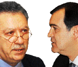 Το «χρώμα του χρήματος» περιμένουν να δουν στην τραπεζική αγορά μετά την ολοκλήρωση του πρώτου γύρου της αντιπαράθεσης της Τράπεζας Πειραιώς με τη Marfin Popular, που έληξε με νικητή τον κ. Μ. Σάλλα (αριστερά). Ολοι συμφωνούν ότι στη συνέχεια την πρωτοβουλία των κινήσεων θα αναλάβει όποιος εμφανίζει στο προσκήνιο μετρητά και περιμένουν από τον κ. Α. Βγενόπουλο (δεξιά) ενέργειες προς αυτή την κατεύθυνση. Γ. ΠΑΠΑΪΩΑΝΝΟΥ * Σελ. Δ2