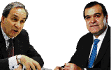 Με προξενιό ο γάμος του ΟΤΕ με τους Γερμανούς * Με τη βοήθεια της MIG η κυβέρνηση δείχνει να πετυχαίνει την επιθυμητή είσοδο στρατηγικού επενδυτή στον Οργανισμό Υστερα από προξενιό του υπουργού Οικονομίας κ. Γ. Αλογοσκούφη (αριστερά) ο αντιπρόεδρος της MIG κ. Α. Βγενόπουλος (δεξιά) συμφώνησε να πουλήσει το 20% του ΟΤΕ, που είχε συγκεντρώσει αγοράζοντας από το περασμένο καλοκαίρι μετοχές στο Χρηματιστήριο,