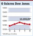 Σερνόταν χθες η Wall Street. Ο δείκτης Dow Jones σημείωνε οριακές απώλειες περίπου 14 μονάδων δύο ώρες πριν από το κλείσιμο των συναλλαγών. Τα χρηματιστήρια της Ευρώπης έκλεισαν με οριακά κέρδη.