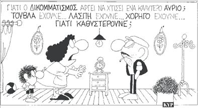 Καμία σοβαρή ξένη χώρα δεν έχει ενδιαφερθεί να μελετήσει τίποτε ελληνικό που να δημιουργήθηκε μετά Χριστόν. Την παράδοση έσπασαν τελικά οι Ρώσοι, που, όπως έγραψα προ καιρού, θέλουν να μελετήσουν την τεχνογνωσία των ΚΕΠ και να την εφαρμόσουν στη Ρωσία. Εφθασε λοιπόν χθες στην Αθήνα η πρώτη αντιπροσωπεία της ρωσικής κυβέρνησης και έγιναν μάλιστα οι σχετικές συνομιλίες με τον υφυπουργό Εσωτερικών κ. Χρ.Ζώη.