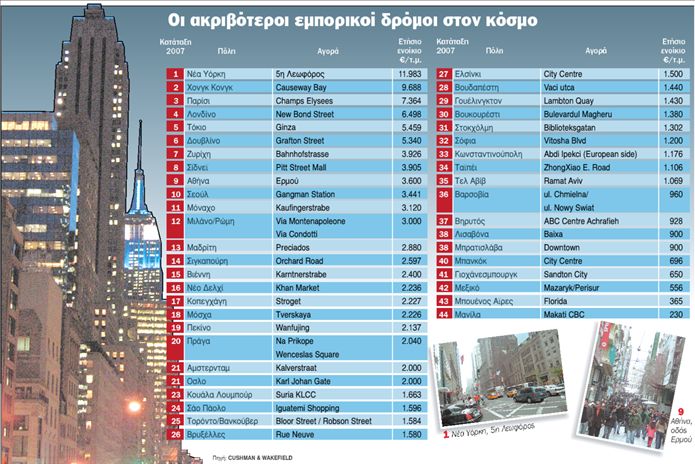 ▅ Μελέτη της διεθνούς εταιρείας συμβούλων ακινήτων Cushman & Wakefield καταγράφει τα ενοίκια καταστημάτων 231 εμπορικών δρόμων σε 44 χώρες