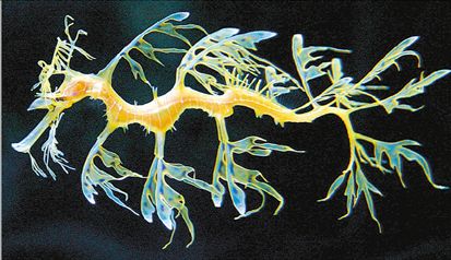 Ο εικονιζόμενος φτερωτός θαλάσσιος δράκος που βρίσκεται σε θαλάσσιο πάρκο στην Ινδονησία ανήκει σε ένα είδος το οποίο είναι υπό εξαφάνιση. Το επιστημονικό του όνομα είναι Ρhycodurus eques, πρόκειται για συγγενή του ιππόκαμπου και ζει μόνο στα ανοιχτά της Δυτικής και της Νότιας Αυστραλίας. Το μήκος του ξεπερνά τα 30 εκατοστά και αναπτύσσει οστέινες απολήξεις στη ραχοκοκαλιά, στα πλευρά και στο κεφάλι, από τις οποίες εκφύονται ταινίες λεπτές σαν γάζα. Οι απολήξεις αυτές αποτελούν, εκτός των άλλων, και ένα τέλειο καμουφλάζ για να κρύβεται από πιθανούς εχθρούς.
