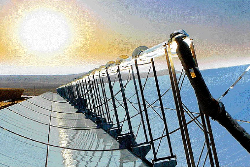 Οι «ηλιοθερμοηλεκτρικοί σταθμοί» τεχνολογίας CSP χρησιμοποιούν παραβολικά κάτοπτρα σε μορφή σκάφης για να συγκεντρώσουν το ηλιακό φως σε έναν διαφανή σωλήνα που διατρέχει κάθε σκάφη. Η σκάφη περιστρέφεται κατά τη διάρκεια της ημέρας, ώστε να διατηρεί την εστίαση του κατόπτρου, ακολουθώντας την τροχιά του Ηλιου. Ενα υγρό που κυκλοφορεί μέσα στον σωλήνα θερμαίνεται… όπως ακριβώς τσουρουφλίστηκαν τα πλοία των Ρωμαίων από τα κάτοπτρα του Αρχιμήδη. Το υγρό αυτό δημιουργεί ατμό, είτε άμεσα είτε μέσω ενός εναλλάκτη θερμότητας. Ο ατμός, με τη σειρά του, τροφοδοτεί έναν ατμοστρόβιλο (τουρμπίνα, τουτέστιν), ο οποίος παράγει ηλεκτρική ενέργεια. Η ενέργεια παρέχεται άμεσα στο ηλεκτρικό δίκτυο, αλλά το περίσσευμά της είτε αποθηκεύεται για να συνεχίζεται η παροχή και τη νύχτα (όταν ο Ηλιος τελειώνει το ωράριο εργασίας του) είτε διοχετεύεται σε παραπλήσια μονάδα αφαλάτωσης θαλασσινού νερού, για την παραγωγή πόσιμου.