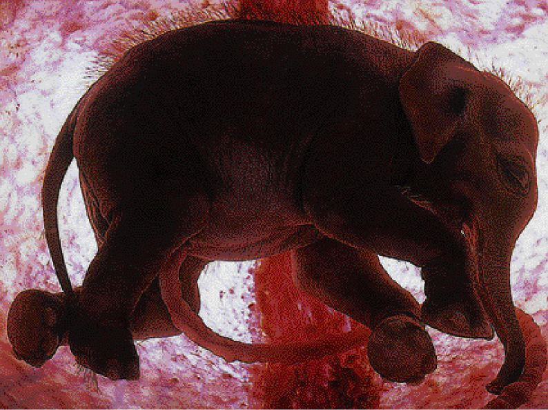 Ενα έμβρυο σκύλου 40 ημερών πραγματοποιεί το χαρακτηριστικό λαχάνιασμα το οποίο είναι απαραίτητο για την επιβίωσή του όταν γεννηθεί. (Και στις 60 ημέρες, λίγο πριν από την γέννησή του, είναι ήδη εξοπλισμένο με την ιδιαίτερα αυξημένη ικανότητα της όσφρησης και της ακοής). Η περίοδος κύησης για τους ελέφαντες φτάνει τους 22 μήνες (!) και τα νεογέννητα ελεφαντάκια μπορούν να έχουν βάρος 120 κιλών. Σύμφωνα με τις εικόνες που καταγράφτηκαν, ήδη από την 18η εβδομάδα το έμβρυο αρχίζει να γυμνάζει τα πόδια και την προβοσκίδα του με αποτέλεσμα να δυναμώνει τους μύες του και να αποκτά δεξιοτεχνία. Στη συνέχεια θα αναπτύξει τα αυτιά και τα πέλματα που θα του επιτρέπουν να «πιάνει» ήχους όπως αυτοί μιας επερχόμενης καταιγίδας ή μιας αγέλης ζώων που μετακινείται σε απόσταση ως και 16 χιλιομέτρων! Η κύηση στα δελφίνια διαρκεί έναν χρόνο, αλλά από την 8η κιόλας εβδομάδα το έμβρυο του δελφινιού κολυμπάει στην «ιδιωτική πισίνα του» στο σώμα της μητέρας του. Μέχρι να ολοκληρώσει την ανάπτυξή του θα έχει αποκτήσει την ικανότητα να κολυμπάει με ταχύτητα που φτάνει τα 35 χιλιόμετρα ανά ώρα.