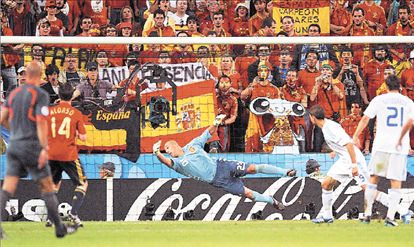 Ο αρχηγός των «Φούριας Ρόχας» Τσάμπι Αλόνσο και ένας από τους ελάχιστους βασικούς που χρησιμοποίησε στο χθεσινό ματς ο τεχνικός της Ισπανίας κ. Λουίς Αραγονιές «αντέγραψε» τον θρυλικό Πελέ, ο οποίος στο εναρκτήριο ματς της Βραζιλίας στο Μουντιάλ του 1970 επιχείρησε να σκοράρει από τη σέντρα βλέποντας τον τερματοφύλακα της Τσεχοσλοβακίας Βίκτορ εκτός θέσης. Ομως όπως τότε ο καλύτερος παίκτης όλων των εποχών αστόχησε για λίγο, έτσι και ο ισπανός μέσος της Λίβερπουλ έστειλε την μπάλα λίγο άουτ.
