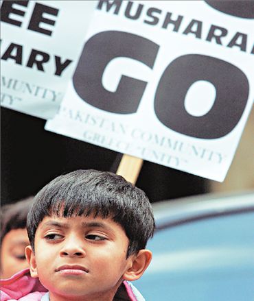 «Μουσάραφ, φύγε», γράφει στα αγγλικά το πανό πίσω από τον μικρό Πακιστανό, έναν από τους εκατοντάδες διαδηλωτές- στην πλειονότητά τους γυναίκες και παιδιά- της πακιστανικής κοινότητας στην Ελλάδα που συγκεντρώθηκαν χθες έξω από την πακιστανική πρεσβεία στην Αθήνα για να διαμαρτυρηθούν εναντίον της κατάστασης εκτάκτου ανάγκης που έχει επιβληθεί στη χώρα καταγωγής τους. Ποιος, όμως, τους ακούει;