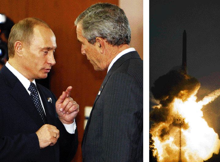 «Οι αμερικανοί εταίροι μας εγκατέλειψαν τη συνθήκη ΑΒΜ. Τους προειδοποιήσαμε πως θα επινοήσουμε μια αντίδραση ώστε να διατηρήσουμε την παγκόσμια στρατηγική ισορροπία. Ετσι, πραγματοποιήσαμε δοκιμή ενός νέου στρατηγικού βαλλιστικού πυραύλου με πολλαπλές κεφαλές, και ενός νέου πυραύλου «Cruise» – και θα συνεχίσουμε να βελτιώνουμε τις δυνατότητές μας» βρυχήθηκε ο «τσάρος» της μετα-σοβιετικής Ρωσίας, και συμπλήρωσε: «Δεν είμαστε εμείς αυτοί που ξεκινήσαμε τον νέο γύρο της κούρσας των εξοπλισμών. Αυτοί είναι που γεμίζουν την Ανατολική Ευρώπη με νέα όπλα… Νέα βάση στη Βουλγαρία, άλλη στη Ρουμανία, συστοιχίες πυραύλων στην Πολωνία, ραντάρ στην Τσεχία. Τι έπρεπε δηλαδή να κάνουμε; Δεν μπορούμε να τα παρακολουθούμε όλα αυτά απαθείς»!