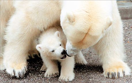 Οι πολικές αρκούδες είναι υπερπροστατευτικές μαμάδες, αλλά η συγκεκριμένη, που ακούει στο όνομα Κορίνα, δεν αφήνει κυριολεκτικά στιγμή από τα μάτια το μικρό της. Ο λόγος; Σε αντίθεση με ό,τι συνέβη με τα προηγούμενα μωρά της, που μεγάλωσαν με μπιμπερό και υπό συνεχή ανθρώπινη επίβλεψη, αυτή τη φορά οι υπεύθυνοι του ζωολογικού κήπου της Στουτγάρδης επέτρεψαν στην Κορίνα να θηλάσει τον νεογέννητο Βιλμπέαρ. Οι πολικές αρκούδες έχουν ενταχθεί και επισήμως στον κατάλογο των ειδών που απειλούνται από εξαφάνιση. Ο πληθυσμός τους δεν ξεπερνά πλέον τις 25.000 σε όλον τον κόσμο.