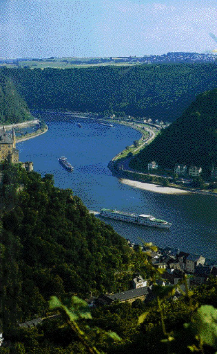 Στον Μέσο Ρήνο το γαλήνιο και καθησυχαστικό τοπίο, με τις χαμηλές δασωμένες όχθες, το διαδέχεται μείγμα απειλής και ειδυλλίου. Το πρωινό είναι κρυστάλλινα λαγαρό και το ποτάμι στενεύει κυλώντας φιδογυριστό ανάμεσα στις απότομες και κατάφυτες με αμπέλια πλαγιές των βουνών τις σπαρμένες με κάστρα. Την κατάλληλη στιγμή, στο ωραιότερο τμήμα του ποταμού, ακούγεται απαλό το τραγούδι της Λορελάι καθώς το πλοίο σκίζει τα πράσινα νερά κάτω από τον βράχο της.