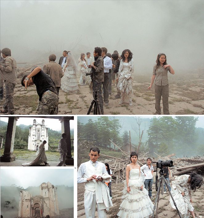 Ισως για μια στιγμή να πίστεψαν ότι ο έρωτάς τους «είναι τόσο δυνατός που κουνάει το Σύμπαν». Ωστόσο η πραγματικότητα αποδείχθηκε πολύ πιο οδυνηρή για πέντε ζευγάρια νεονύμφων στην Κίνα. Την προπερασμένη Δευτέρα, την ώρα του φοβερού σεισμού των 7,9 ρίχτερ, βρίσκονταν φορώντας τα νυφικά και τα «γαμπριάτικά» τους, μπροστά σε έναν παλαιό καθολικό ναό, μόλις 45 χιλιόμετρα νότια από το επίκεντρο. Τα χαμόγελά τους πάγωσαν όταν η γη άρχισε να τρέμει και ένα σύννεφο σκόνης κάλυψε τα πάντα (φωτογραφία επάνω).