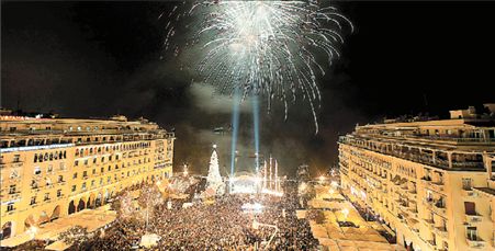 «Επίσημη πρώτη» προχθές για το χριστουγεννιάτικο δέντρο της Θεσσαλονίκης. Με σύνθημα «Ολη η πόλη μια παρέα» περισσότεροι από 10.000 πολίτες αψήφησαν το κρύο και κατέκλυσαν την πλατεία Αριστοτέλους, περιμένοντας τον δήμαρχο Θεσσαλονίκης κ. Β.Παπαγεωργόπουλο να ανάψει τα φωτάκια του ύψους 22 μέτρων δέντρου, της φάτνης και του καραβιού τα οποία θα στολίζουν τις ημέρες των εορτών την κεντρική πλατεία της πόλης. Την ίδια ώρα μέλη των επιτροπών ενάντια στην ακρίβεια έστησαν απέναντι από το κινηματοθέατρο Ολύμπιον ένα.