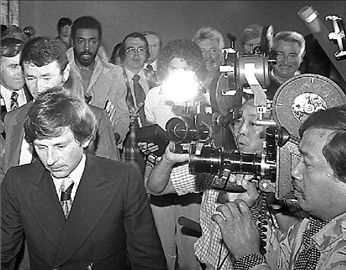 Οταν ο Πολάνσκι αποδέχθηκε την ενοχή του στην κατηγορία της παράνομης σεξουαλικής πράξης σε ανήλικο (αρχικώς του είχαν αποδοθεί έξι κατηγορίες), ο δικαστής Λόρενς Ρίτενμπαντ αποφάσισε την προσωρινή κράτησή του, την ώρα που τόσο ο συνήγορος του Πολάνσκι όσο και ο δικηγόρος της Γκάιγκερ είχαν συμφωνήσει να μη φυλακιστεί. Διψασμένος για δημοσιότητα ο Ρίτενμπαντ δήλωσε στον Τύπο ότι αν ο Πολάνσκι ήθελε να αποφύγει την ποινή, δεν είχε παρά να εγκαταλείψει τη χώρα. Και έτσι έπραξε. «Ημουν ένα ποντίκι εναντίον πεινασμένων γατών» δήλωσε ο σκηνοθέτης.