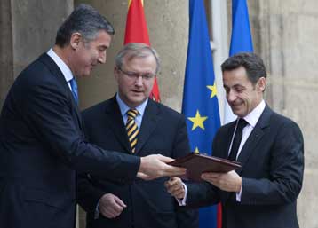Ο Μίλο Τζουκάνοβιτς παραδίδει στον Νικολά Σαρκοζί το αίτημα ένταξης του Μαυροβουνίου στην ΕΕ