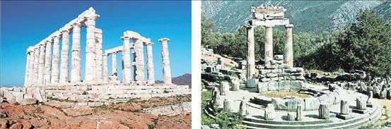 Ναοί αφιερωμένοι στην Αρτεμη και στον Απόλλωνα ανεγείρονταν σε κυνηγετικές περιοχές. Ιερά της Ηρας και του Ερμή ιδρύονταν επάνω σε αργιλώδη εδάφη, όπου τα χώματα είναι πλούσια και κατάλληλα για την εκτροφή βοοειδών. Τα ιερά της Δήμητρας και του Διονύσου εξάλλου βρέθηκαν σε εύφορα εδάφη- όπως είναι γνωστό, οι δύο αυτές θεότητες σχετίζονταν με την καλλιέργεια της γης και ειδικότερα των σιτηρών και της αμπέλου. Μεγάλα αγροτεμάχια όμως φαίνεται να έχουν μεγαλύτερη σχέση με την Εστία, τον Ηφαιστο και τον Αρη. Ο Ποσειδώνας και η Αφροδίτη, από την άλλη, θεότητες που συνδέονται με τη θάλασσα, είχαν τα ιερά τους σε άγονα εδάφη, πλησίον όμως αλιευτικών καταφυγίων. Οσο για τον άρχοντα του Κάτω Κόσμου, τον Αδη, και τη βασίλισσά του Περσεφόνη, λατρεύονταν σε βαθιά, σκοτεινά σπήλαια. Ο κ. Ρίταλακ ανατρέχει στα συγγράμματα των πρώτων ελλήνων ιστορικών μέσα από τα οποία γίνεται φανερό ότι «οι θρησκευτικοί χώροι προηγούνταν της ανέγερσης ναών για πολλούς αιώνες με υπαίθριες τελετές οι οποίες οδήγησαν στην κατασκευή ναών,ξύλινων αρχικώς, που στη συνέχεια αντικαταστάθηκαν από μαρμάρινους, αναδεικνύοντας τον πλούτο και το κύρος των πόλεων της Κλασικής Εποχής» όπως λέει.