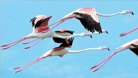 Εψαχναν για ένα ηπιότερο κλίμα και αρκετή τροφή και στις αρχές της δεκαετίας του 1990 βρέθηκαν στην Ελλάδα. Ο λόγος για τα φλαμίνγκο ή αλλιώς τα φοινικόπτερα, που κάθε Σεπτέμβρη ξεκινούν να συγκεντρώνονται σε υγροτόπους της Βόρειας Ελλάδας για να… ξεχειμωνιάσουν. Αυτές τις ημέρες κορυφώνεται η «εισβολή» των πανέμορφων πτηνών στο Δέλτα του ποταμού Αξιού, όπου χύνονται ακόμη ο Γαλλικός, ο Λουδίας και ο Αλιάκμονας, καθώς εκεί συναντάται η λεγόμενη «μικρή γαρίδα», που έχει μήκος μόλις μισό εκατοστό και, λόγω των χρωστικών ουσιών που διαθέτει, είναι ουσιαστικά υπεύθυνη για το ροζ χρώμα των φλαμίνγκο. Η παρουσία των φλαμίνγκο έχει προκαλέσει και το ενδιαφέρον μικρών και μεγάλων. (ΕURΟΚΙΝΙSSΙ)