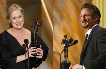 Η Μέριλ Στριπ, ο Σον Πεν και το Slumdog Millionaire είναι οι μεγάλοι νικητές των Guild Awards, των βραβείων που απονέμει το Σωματείο Αμερικανών Ηθοποιών (SAG).Πλέον, ο χρόνος μετρά αντίστροφα για τη μεγάλη βραδιά της απονομής των Όσκαρ, στις 22 Φεβρουαρίου.