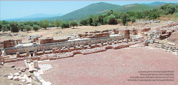 Στη Μεσσήνη οι ανασκαφικές εργασίες συνεχίζονται για την πλήρη αποκάλυψη των αυλάκων και της ανατολικής παρόδου του θεάτρου, όπου βρίσκεται η σκηνοθήκη, ώστε να αρχίσει το αναστηλωτικό έργο. Στο πλαίσιο τριετούς προγράμματος που ήδη άρχισε με επιχορήγηση του Ιδρύματος Σταύρος Νιάρχος, ο κ. Θέμελης καλείται να αναστηλώσει τις παρόδους και το κοίλον του θεάτρου, καθώς και ένα τμήμα του προσκηνίου, ενώ θα γίνει στήριξη του αναλήμματος, το οποίο συγκρατεί το θέατρο. Ενα «λατομείο» με πέτρα έτοιμη προς χρήση υπήρξε από τα πρώτα χριστιανικά χρόνια και για αιώνες στη συνέχεια το κοίλον του αρχαίου θεάτρου, το άνω διάζωμα του οποίου, το λεγόμενο επιθέατρο, έχει σχεδόν ολοκληρωτικά καταστραφεί. Αποξήλωναν τα εδώλια και μετέφεραν το υλικό τους με κάρα για να κτίσουν σπίτια και εκκλησίες, όπως λέει ο κ. Θέμελης. Την απόδειξη δίνει η παλαιοχριστιανική βασιλική πλησίον του θεάτρου, που είχε κατασκευαστεί από αρχαίο υλικό, αλλά και το πλήθος των οικιών της Βυζαντινής εποχής που κτίστηκαν επάνω στο τμήμα του επιθεάτρου με τη χρησιμοποίηση των εδωλίων για τη δόμησή τους. Τα εδώλια