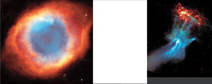 Μετά το «Μάτι» του Θεού εντοπίστηκε και το «Χέρι» του… Δύο εκρήξεις σουπερνόβα είναι υπεύθυνες για τη δημιουργία δύο εντυπωσιακών κοσμικών αντικειμένων τα οποία λόγω του σχήματός τους οι επιστήμονες βάφτισαν «Το Μάτι του Θεού» και «Το Χέρι του Θεού» αντίστοιχα. Αριστερά, εικονίζεται το Νεφέλωμα της Ελικας (το Μάτι), σε απόσταση περίπου 650 ετών φωτός μακριά μας. Εντοπίστηκε για πρώτη φορά τον 19ο αιώνα, αλλά μόλις πριν από λίγες εβδομάδες οι επιστήμονες κατάφεραν να λάβουν μια κοντινή και καθαρή φωτογραφία του. Δεξιά, η φωτογραφία την οποία τράβηξε το διαστημικό τηλεσκόπιο Spitzer από ένα πάλσαρ (απομεινάρι της έκρηξης ενός άστρου) σε απόσταση 17.000 ετών φωτός. Η σκόνη και τα αέρια που δημιουργήθηκαν από την έκρηξη έχουν δημιουργήσει ένα μεγάλο νεφέλωμα έκτασης 150 ετών φωτός το οποίο μοιάζει με χέρι.
