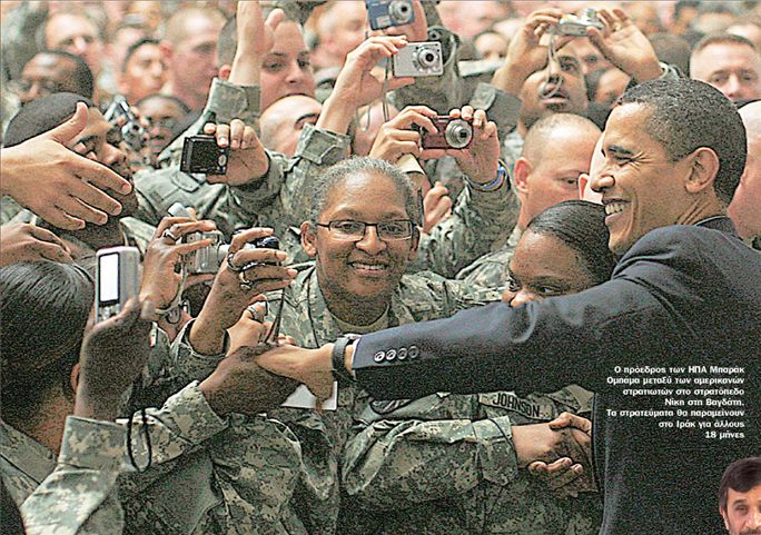 Τα αμερικανικά στρατεύματα θα παραμείνουν στο Ιράκ για άλλους δεκαοκτώ μήνες. Μολονότι ο ρόλος τους δεν έχει διευκρινιστεί, δεν πρόκειται να εμπλακούν σε μάχες: τούτο αποτελεί βήμα προόδου εφόσον το τοπίο είναι σήμερα πιο ήρεμο (αν και όχι όσο θέλουν να το παρουσιάζουν τα κουρασμένα ΜΜΕ). Αυτός όμως είναι και ο λόγος για τον οποίο πρέπει να απαντηθούν κάποια μείζονα ερωτήματα: Θα αποχωρήσουν πλήρως τα στρατεύματα; Πόσοι στρατιώτες θα παραμείνουν στο Ιράκ (μας έχουν πει περίπου 50.000, αλλά έχουμε επίσης μάθει ότι ο αριθμός τους μπορεί να αυξηθεί εκ νέου); Ολα αυτά δείχνουν ότι η «ειρήνη» που επικρατεί σήμερα είναι πρόσκαιρη- γεγονός εύλογο, αφού το Ιράκ δεν είναι μια χώρα, αλλά τρεις. Ο κουρδικός Βορράς, φέρ΄ ειπείν, δεν είναι καθόλου ήρεμος. Η σουνιτική Δύση, ομοίως, παρουσιάζει σημάδια αναβρασμού. Γίνεται λόγος ακόμη και για νέα συνεργασία με την Αλ Κάιντα- αυτό τουλάχιστον δήλωσε στις 8 Απριλίου ο στρατηγός Οντιέρνο, επικεφαλής της αμερικανικής αποχώρησης από το Ιράκ, αλλά η προστατευτική ασπίδα που έχει στήσει ο ελληνικός συντηρητισμός δεν αφήνει ειδήσεις σαν αυτήν να πλήξουν την τεχνητή αισιοδοξία υπέρ του Ομπάμα.