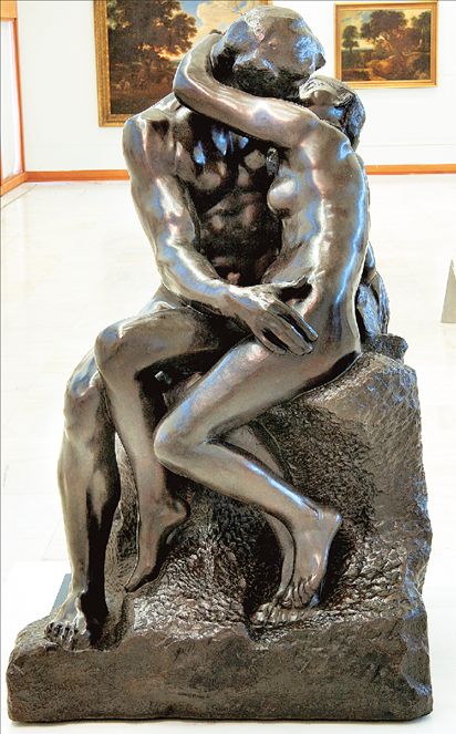 Το Φιλί, ένα από τα ωραιότερα και πιο δημοφιλή γλυπτά του μεγάλου γάλλου γλύπτη Ωγκύστ Ροντέν, εκτίθεται εδώ και λίγες ημέρες στην Εθνική Πινακοθήκη. Είναι το τελευταίο απόκτημα του Κοινωφελούς Ιδρύματος Αλέξανδρος Σ. Ωνάσης, που ήρθε να προστεθεί στην πρόσφατη αγορά τηςΣτέψης της Θεοτόκουτου Δομήνικου Θεοτοκόπουλου. Και τα δύο έργα θα παραμείνουν στην Εθνική Πινακοθήκη ως δάνεια διαρκείας ώσπου να αποπερατωθεί η Στέγη Γραμμάτων και Τεχνών του Ιδρύματος για την οποία και προορίζονται. Αξίζει να υπενθυμίσουμε ότι δύο ακόμη γλυπτικές συνθέσεις του μαθητή του Ροντέν, Αντουάν Μπουρντέλ, οΘνήσκων Κένταυροςκαι η Σαπφώ, που είχαν αγοραστεί από τον αείμνηστο Στέλιο Παπαδημητρίου για λογαριασμό του Ιδρύματος το 2004, με την ευκαιρία της έκθεσης «Εξι κορυφαίοι γλύπτες συνομιλούν με τον Ανθρωπο», κοσμούν την πρόσοψη του Μουσείου, περιμένοντας την ώρα που θα μεταφερθούν στον τελικό προορισμό τους. Ο επισκέπτης της Εθνικής Πινακοθήκης μπορεί να σχηματίσει αρκετά ευκρινή εικόνα για τη δημιουργία των δύο κορυφαίων δημιουργών αφού, εκτός από τα έργα που προαναφέραμε, μπορεί να δει και δύο ακόμη γλυπτά του Ροντέν, τονΑσωτο Υιό, που αγοράστηκε παλαιότερα με δωρεά του Σταύρου Νιάρχου, και τονΑνθρωπο που βαδίζει πάνω σε κολόνα, το οποίο αποκτήθηκε με χορηγία της Εθνικής Τράπεζας το 2004.