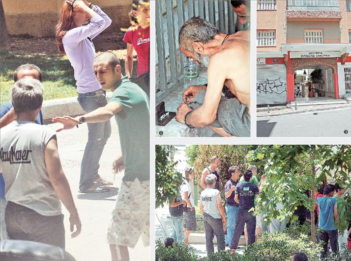 «Το μάζεμα ξεκινά γύρω στις 10 το πρωί ως τις 11.30. Τότε γίνονται και οι πρώτες “παραλαβές”. Στη συνέχεια γίνονται “σκούπες” από την Αστυνομία- οι περισσότεροι καταφεύγουν ως το κτίριο του ΟΑΕΔ- και κατά τις 4 το απόγευμα επανέρχονται δριμύτεροι» αναφέρει υπάλληλος που εργάζεται σε απόσταση αναπνοής από την πλατεία. «Οι περισσότεροι τοξικομανείς μαζεύονται πια εδώ» συμπληρώνει. Καίτοι είναι μεσημέρι, η αγορά δουλεύει κανονικά και η Πειραιώς σφύζει από ζωή, σε μια γωνία της πλατείας το «deal» δεν πάει καλά και αρχίζουν οι φασαρίες. Λίγο πιο πέρα, σε μια «καβάτζα» ανάμεσα στη Δημοτική Πινακοθήκη και στο διπλανό νηπιαγωγείο, ένας μεσήλικος κάθεται σε στάση προσευχής, ανοίγει το κουτάκι με τα «εργαλεία», βγάζει την «καλή» του σύριγγα, «χτυπάει» πρέζα ανάμεσα στους περαστικούς και ύστερα από λίγο πέφτει σε «ντάγκλα». Οι «συνοδοιπόροι» του περνάνε πού και πού για να δουν αν είναι εντάξει. Γύρω τους η κατάσταση δεν είναι διαφορετική. «Από την παραγωγή στην κατανάλωση» σχολιάζει ένας περαστικός.