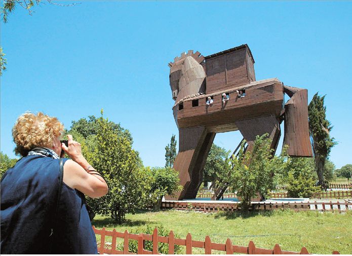 «Περίπου οι διπλάσιοι» απαντάει ο Σάβας κοιτάζοντας το πλήθος των Γερμανών που αυτή τη στιγμή μπαίνουν στο ομοίωμα του ξύλινου αλόγου που κατασκευάστηκε το 1975 για να λειτουργήσει σαν κράχτης. «Ερχονται οι διπλάσιοι, όπως σας είπαακόμη και Γιαπωνέζοι. Οι Αμερικανοί έρχονται λόγω της ταινίας με τον Μπραντ Πιτ, οι Τούρκοι για τον ίδιο λόγο, οι Αγγλοι γιατί ταξιδεύουν με κρουαζιερόπλοια που πιάνουν εδώ, οι Γερμανοί εξαιτίας του αρχαιολόγου που ανακάλυψε την πόλη, του Ερρίκου Σλήμαν».