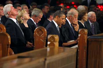 Παρόντες στην κηδεία, εκτός από τον Μπ.Ομπάμα οι Χίλαρι και Μπιλ Κλίντον, ο αντιπρόεδρος των ΗΠΑ Τζο Μπάιντεν, καθώς και οι πρώην πρόεδροι των ΗΠΑ Τζορτζ Μπους και Τζίμι Κάρτερ. Στην κηδεία παρέστη και ο διάσημος ηθοποιός Τζακ Νίκολσον.