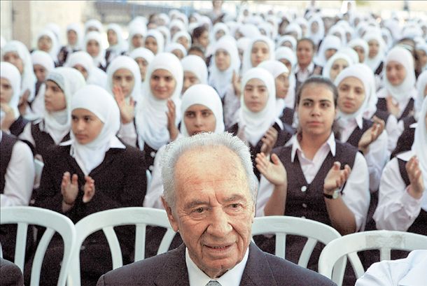 ΕΝΑΣ ΠΡΟΕΔΡΟΣ ΣΤΟ ΣΧΟΛΕΙΟ Παράδοξη φαντάζει η εμφάνιση του προέδρου του ΙσραήλΣίμον Πέρεςμπροστά από μουσουλμάνες μαθήτριες σε σχολείο της συνοικίας Σεΐχ Τζαράχ στην Ανατολική Ιερουσαλήμ. Ακόμη πιο... παράδοξη είναι ωστόσο η κατάσταση που επικρατεί στην Ανατολική Ιερουσαλήμ, απ΄ όπου λείπουν περισσότερες από 1.000 σχολικές αίθουσες για να στεγάσουν τους μαθητές. Σύμφωνα με έκθεση της οργάνωσης Αssociation for Civil Rights στο Ισραήλ και της μη κερδοσκοπικής ισραηλινής Ιr Αmir, από τα περίπου 90.