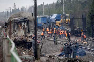 Ο επικεφαλής της FSB Αλεξάντερ Μπορτνίκοφ ενημέρωσε τον πρόεδρο τη Ρωσίας Ντίμιτρι Μεντβεντέφ ότι το δυστύχημα στη γραμμή Μόσχας-Αγίας Πετρούπολης το βράδυ της Παρασκευής προκλήθηκε από βόμβα με επτά κιλά της εκρηκτικής ύλης ΤΝΤ.