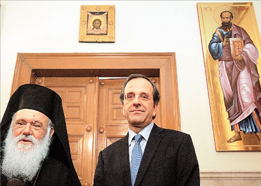 Ακόμη και τον προνομιακό χώρο του ΛΑΟΣ, την Εκκλησία, διεκδικεί πλέον ο κ. Αντ. Σαμαράς, που θέλει να ανακτήσει την εμπιστοσύνη της ιεραρχίας προς το κόμμα της ΝΔ. Ο πρόεδρος της ΝΔ συναντήθηκε χθες με τον Αρχιεπίσκοπο Αθηνών κ. Ιερώνυμο στο Αρχιεπισκοπικό Μέγαρο της οδού Αγίας Φιλοθέης. Ο κ. Σαμαράς, κατά τη διάρκεια της ιδιαίτερα φιλικής συνομιλίας του με τον κ. Ιερώνυμο, εξήρε το φιλανθρωπικό έργο της Εκκλησίας και δήλωσε αρωγός και συμπαραστάτης. Ο κ. Ιερώνυμος ευχήθηκε στον κ. Σαμαρά, με τον οποίο συνδέεται με πολυετή φιλία, καλή επιτυχία στο νέο του ξεκίνημα και τον προέτρεψε να ανταποκριθεί με δύναμη, διαφάνεια και διαύγεια στα νέα του καθήκοντα. «Εχουμε πολλά θέματα και γι΄ αυτό χρειαζόμαστε όλους τους πολιτικούς στο πλευρό μας» δήλωσε ο Αρχιεπίσκοπος.