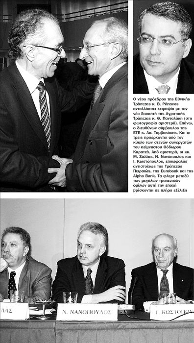 Ο Θόδωρος Πανταλάκης, νέος διοικητής της Αγροτικής Τράπεζας, ήταν στο πλευρό του Θόδωρου Καρατζά από την εποχή του υπουργείου Οικονομίας, όταν κατήρτιζε τον νόμο για την απελευθέρωση του χρηματοοικονομικού τομέα, και τον ακολούθησε το 1996 ως υποδιοικητής στην Εθνική Τράπεζα. Οι κκ. Β. Ράπανος και Απ. Ταμβακάκης το 1996 βρέθηκαν στη διοίκηση της Κτηματικής Τράπεζας και πρωταγωνίστησαν με τον Θόδωρο Καρατζά στη διαδικασία μεγέθυνσης της Εθνικής Τράπεζας και του κύματος συγχωνεύσεων που προκάλεσε. Επί των ημερών τους η Εθνική Τράπεζα απορρόφησε την Κτηματική και ο μεν κ. Ράπανος αρνήθηκε οποιαδήποτε θέση και αργότερα τοποθετήθηκε στον ΟΤΕ, ο δε κ. Ταμβακάκης έγινε υποδιοικητής της μεγαλύτερης πια Εθνικής Τράπεζας, όπου σε αντίστοιχες θέσεις υπηρετούσαν οι κκ. Πανταλάκης και Καραμούζης. Ο τελευταίος αποχώρησε από την Εθνική το 1999 για τη Εurobank. Οι κκ. Πανταλάκης και Ταμβακάκης έμειναν στην Εθνική Τράπεζα ως το 2004 και ήταν αυτοί που «εγκατέστησαν» μετά τη νίκη της Νέας Δημοκρατίας τον κ. Αράπογλου στην Εθνική Τράπεζα. Από εκεί αποχώρησαν, ο πρώτος για την Τράπεζα Πειραιώς και ο δεύτερος για τη Lamda του ομίλου Λάτση, όπου σχεδόν συστεγάστηκε με τον κ. Καραμούζη, ο οποίος εν τω μεταξύ είχε αναδειχθεί αναπληρωτής διευθύων σύμβουλος της Εurobank.