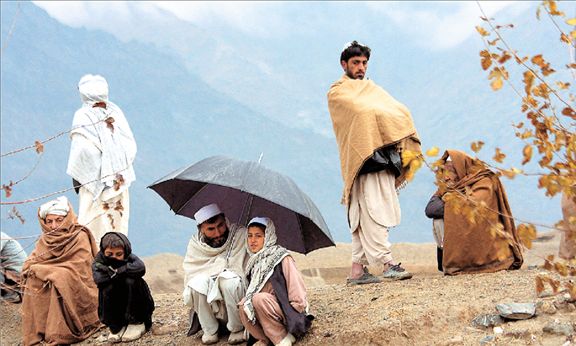 ΟΙ ΚΑΚΟΥΧΙΕΣ ΤΟΥ ΑΦΓΑΝΙΣΤΑΝ Δεν είναι «ταμπλό βιβάν» ούτε κομπάρσοι ταινίας οι οποίοι περιμένουν τον σκηνοθέτη να δώσει την εντολή για το γύρισμα. Είναι ξεχασμένοι από όλους κάτοικοι του χωριού Νεζάν Χελ του Αφγανιστάν. Με κουβέρτες και μία ομπρέλα προσπαθούν να προστατευθούν από το δριμύ ψύχος και τη βροχή, στους πρόποδες του όρους Ιντού Κους κοντά στα σύνορα με το Πακιστάν. Αξιωματικοί και στρατιώτες της γαλλικής Λεγεώνας των Ξένων, οι οποίοι έχουν αναπτυχθεί στο πλαίσιο της νατοϊκής δύναμης, συναντήθηκαν με τοπικούς δημογέροντες. Στην περιοχή δρουν εκατο ντάδες αντάρτες και οι ντόπιοι, αν και, όπως λένε, υποστηρίζουν τις κυβερνητικές και νατοϊκές δυνάμεις, αισθάνονται ανασφαλείς. (ΑΡ/ΑLFRΕD DΕ ΜΟΝΤΕSQUΙΟU)