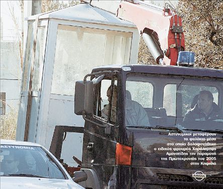 ώρα τής 31.12.2004. Περί την ώρα 3.10 της ιδίας τουλάχιστον δύο άτομα πλησίασαν το φυλάκιο εντός του οποίου ευρίσκετο ο ειδικός φρουρός και, αφού στην αρχή πιθανότατα ο ένας από αυτούς συνομίλησε μαζί του, στη συνέχεια τον πυροβόλησαν αρκετές φορές με αποτέλεσμα τον θανάσιμο τραυματισμό του. Αμέσως μετά την εγκληματική ενέργειά τους οι δράστες αφαίρεσαν το υπ΄ αριθμόν C295791 ΜΡ5 υπηρεσιακό υποπολυβόλο, στη συνέχεια επιβιβάστηκαν σε ΙΧΕ αυτοκίνητο που ήταν σταθμευμένο στη συμβολή των οδών Καρπάθου και Μπακογιάννη και στο οποίο πιθανότατα τους ανέμενε κι άλλο άτομο και απομακρύνθηκαν από το σημείο κινούμενοι επί της οδού Μπακογιάννη προς την οδό Χαριλάου Τρικούπη στην Κηφισιά» αναφέρεται στο έγγραφο της Αστυνομίας. ▅ Το αυτοκίνητο