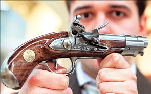 ΕΝΑ ΜΟΝΑΔΙΚΟ πιστόλι της ναπολεόντειας χωροφυλακής παρουσιάστηκε στη διεθνή έκθεση όπλων κυνηγίου που πραγματοποιείται αυτές τις ημέρες στη Νυρεμβέργη, στη Γερμανία, με τη συμμετοχή 1.141 εκθετών από 55 χώρες.