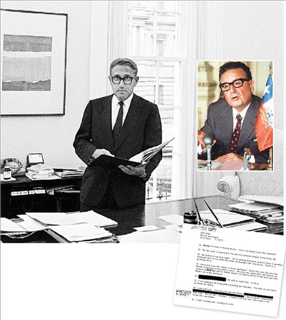 Oκτώ ημέρες μετά την εκλογή του Αλιέντε με μικρή σχετικά πλειοψηφία, στις 12 Σεπτεμβρίου 1970 στις 12 το μεσημέρι, σύμφωνα με το πρώτο απομαγνητοφωνημένο κείμενο, ο Κίσινγκερ φέρεται να λέει στον διευθυντή της CΙΑ Ρίτσαρντ Χελμς: «Δεν θ΄ αφήσουμε τη Χιλή να χαραμιστεί με αυτόν τον τρόπο!», για να λάβει αμέσως τη διαβεβαίωση του συνομιλητή του: «Ασφαλώς.Εστειλα ήδη άνθρωπο δικό μου να δει από κοντά τι γίνεται εκεί κάτω…». Το όνομα του απεσταλμένου παραλείπεται, ενώ όπου αλλού αναφέρονται ονόματα πρακτόρων που στελέχωναν εκείνες τις αποστολές καλύπτονται με μελανή ταινία και με την ένδειξη «αποστειρωμένο αντίγραφο» («sanitized copy»).