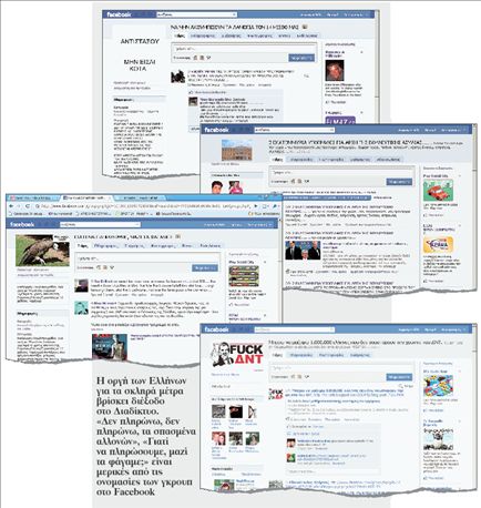«Δεν πληρώνω, δεν πληρώνω τα σπασμένα αλλονών», «μην ακουμπάτε, λαμόγια, τον 14ο μισθό», «γιατί να πληρώσουμε, μαζί τα φάγαμε;», και άλλα πολλά που θυμίζουν συνθήματα της Πρωτομαγιάς ή των επερχόμενων κινητοποιήσεων και διαμαρτυριών για την προσφυγή της χώρας στο ΔΝΤ και την λήψη πρόσθετων, οικονομικών και φορολογικών μέτρων. Η κραυγή των δυσαρεστημένων, οργισμένων και απογοητευμένων Ελλήνων έχει βρει τον δικτυακό τηλεβόα και το ψηφιακό πανό της, φθάνοντας, κατά αυτόν τον τρόπο, στις οθόνες πολλών χρηστών ανά την υφήλιο. Οι σελίδες κοινωνικής δικτύωσης όπως το Facebook και το Twitter, έχουν κατακλυστεί από νέους «λογαριασμούς» και συνομιλίες, όπου, άλλοτε με έντονη την δυσαρέσκεια, άλλοτε με πικρό, μαύρο χιούμορ και φαρμακερές «μπηχτές» για το πολιτικό προσωπικό της χώρας, κατακρίνεται η επιλογή του ΔΝΤ και όσων αυτή έχει επιφέρει ήδη στην καθημερινότητα.