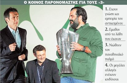« Ο Πατέρας, ο Αντωνίου και ο Νιόπλιας δημιούργη- σαν μια επιτυχημένη ομάδα που έφερε το επιθυμητό αποτέλεσμα και θεωρώ ότι πρέπει παραμείνουν στο πόστο τους. Εχουν γνώση του αντικειμένου, πλέον έχουν εμπειρία και θα πρέπει να συνεχίσουν πάνω σε αυτά που έχουν χτίσει. Αλλωστεοι μεγάλες αλλαγές πάντοτε ενέχουν και τον κίνδυνο να μη φέρουν τα επιθυμητά αποτελέσματα ».