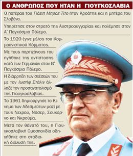 ΒΕΛΙΓΡΑΔΙ Τριάντα χρόνια συμπληρώνονται σήμερα από την ημέρα του θανάτου του Τίτο και η νοσταλγία για την εποχή του συγκρούεται με την επικριτική στάση για τον βίο και την πολιτεία του. Για τους παλαιότερους, η περίοδος της παντοδυναμίας του ήταν η καλύτερη που έζησαν ποτέ. Για πολλούς άλλους- πιο αντικειμενικούς παρατηρητές των ιστορικών γεγονότων- ο Τίτο δεν είχε τη διορατικότητα για να αφήσει πίσω του τους μηχανισμούς που θα διατηρούσαν ενωμένη τη Γιουγκοσλαβική Ομοσπονδία.