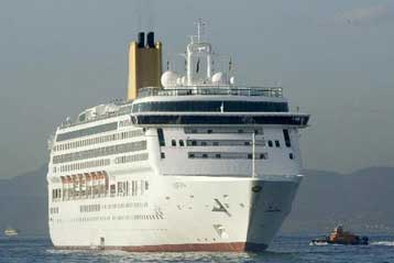 Ανάλογη ταλαιπωρία υπέστησαν και οι 1.630 επιβάτες του, επίσης με σημαία Παναμά, κρουαζιερόπλοιου «Αρμονία», το οποίο για τον ίδιο λόγο έδεσε στο λιμάνι μετά από δυο ώρες.