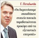 Αλλά και ο κ. Γ.Πεταλωτής επανέλαβε χθες ότι η κυβέρνηση δεν σκοπεύει να χαριστεί σε κανέναν. «Η πολιτική βούλησή μας είναι να διερευνήσουμε- και να διερευνήσει η Δικαιοσύνη από ένα σημείο και πέρα- οποιοδήποτε στοιχείο ποινικής παραβατικότητας προκύψει από τις εξεταστικές επιτροπές. Δεν θα κάνουμε πίσω, οτιδήποτε και αν συναντήσουμε μπροστά μας, οποιοδήποτε πολιτικό ή μη πρόσωπο» δήλωσε ο κυβερνητικός εκπρόσωπος.