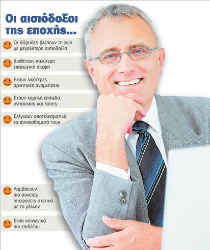ΝΕΑ ΥΟΡΚΗ Αισιόδοξα συναισθήματα και πιο θετικές αρκετές παραμέτρους της καθημερινής ζωής όσον αφορά πολλούς 50χρονους κατέγραψε μεγάλη έρευνα που διεξήχθη στις Ηνωμένες Πολιτείες. Τα πορίσματά της δημοσιεύθηκαν στην επιστημονική επιθεώρηση «Ρroceedings of the Νational Αcademy of Sciences». Οι ψυχολόγοι και οι ειδικοί ερευνητές διαπίστωσαν ότι η είσοδος στην έκτη δεκαετία της ζωής σηματοδοτεί για πολλούς ανθρώπους την έναρξη κάποιων «πραγματικά ευτυχισμένων ετών» τα οποία υπάρχουν μεγάλες πιθανότητες να ακολουθήσουν. Και μάλιστα ανεξάρτητα από την οικονομική κατάσταση των πενηντάρηδων, καθώς φαίνεται ότι η ευτυχία εξαρτάται κατά πολύ από την ποιότητα των ανθρώπινων σχέσεωντην οικογένεια και τους φίλους δηλαδή-, καθώς και από την ύπαρξη ενδιαφερόντων, ακόμη και αν είναι απλώς χόμπι, όπως το διάβασμα ή η ορειβασία.