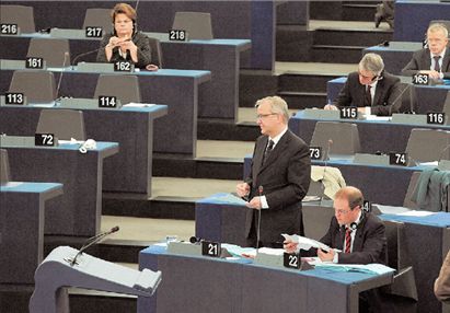 Το ζήτημα της στάσης της ΝΔ τέθηκε χθες στην Ευρωβουλή όταν, κατά τη διάρκεια της ακρόασης από την Ολομέλεια του επιτρόπου κ. Ολι Ρεν, ο επικεφαλής της πολιτικής ομάδας του ΕΛΚ κ. Ζόζεφ Ντολ κατηγόρησε τους γερμανούς Σοσιαλιστές ότι για λόγους μικροπολιτικών σκοπιμοτήτων καταψήφισαν στη γερμανική Βουλή το σχέδιο αρωγής προς την Ελλάδα. Απαντώντας, ο επικεφαλής της πολιτικής ομάδας των ευρωπαίων Σοσιαλιστών κ. Μάρτιν Σουλτς, μέλος του γερμανικού Σοσιαλδημοκρατικού Κόμματος SΡD, σχολίασε, μεταξύ άλλων, την απόφαση της ΝΔ να καταψηφίσει το σχέδιο για την Ελλάδα και κάλεσε τον κ. Ντολ να φροντίσει τα του οίκου του και στη συνέχεια να ασκεί κριτικές σε άλλους.